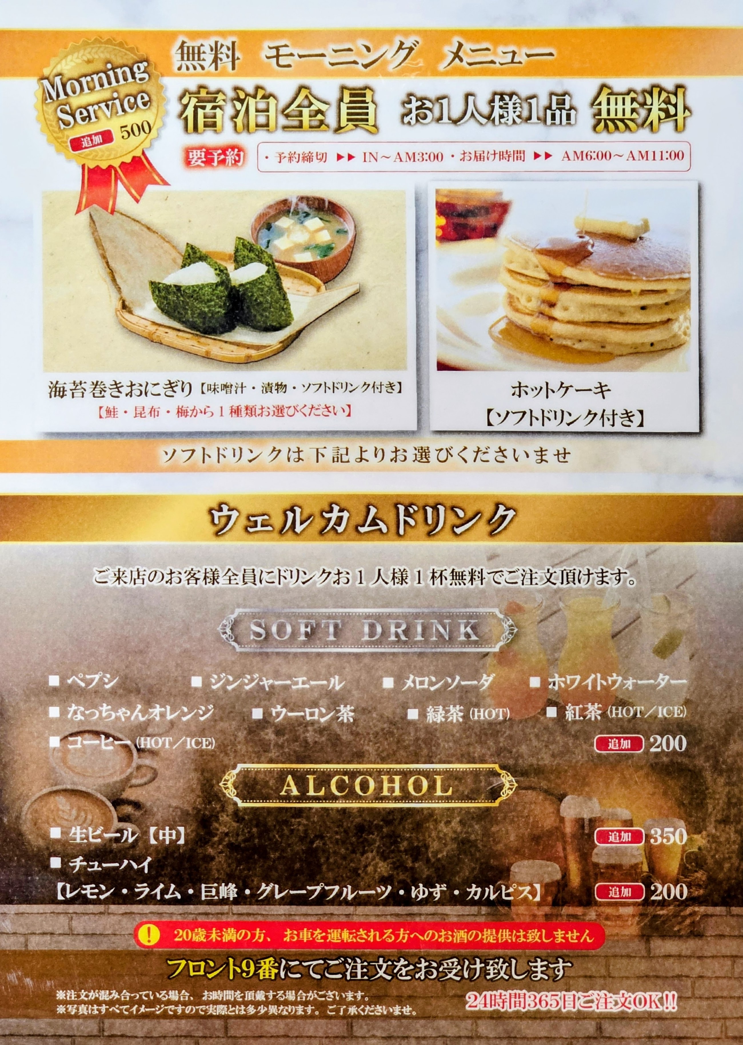 ウェルカムドリンク・無料朝食